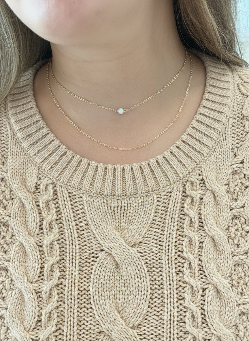 Understated and luminous, this necklace features a single mother of pearl bead on a delicate chain. A minimal piece that adds effortless elegance to any look.