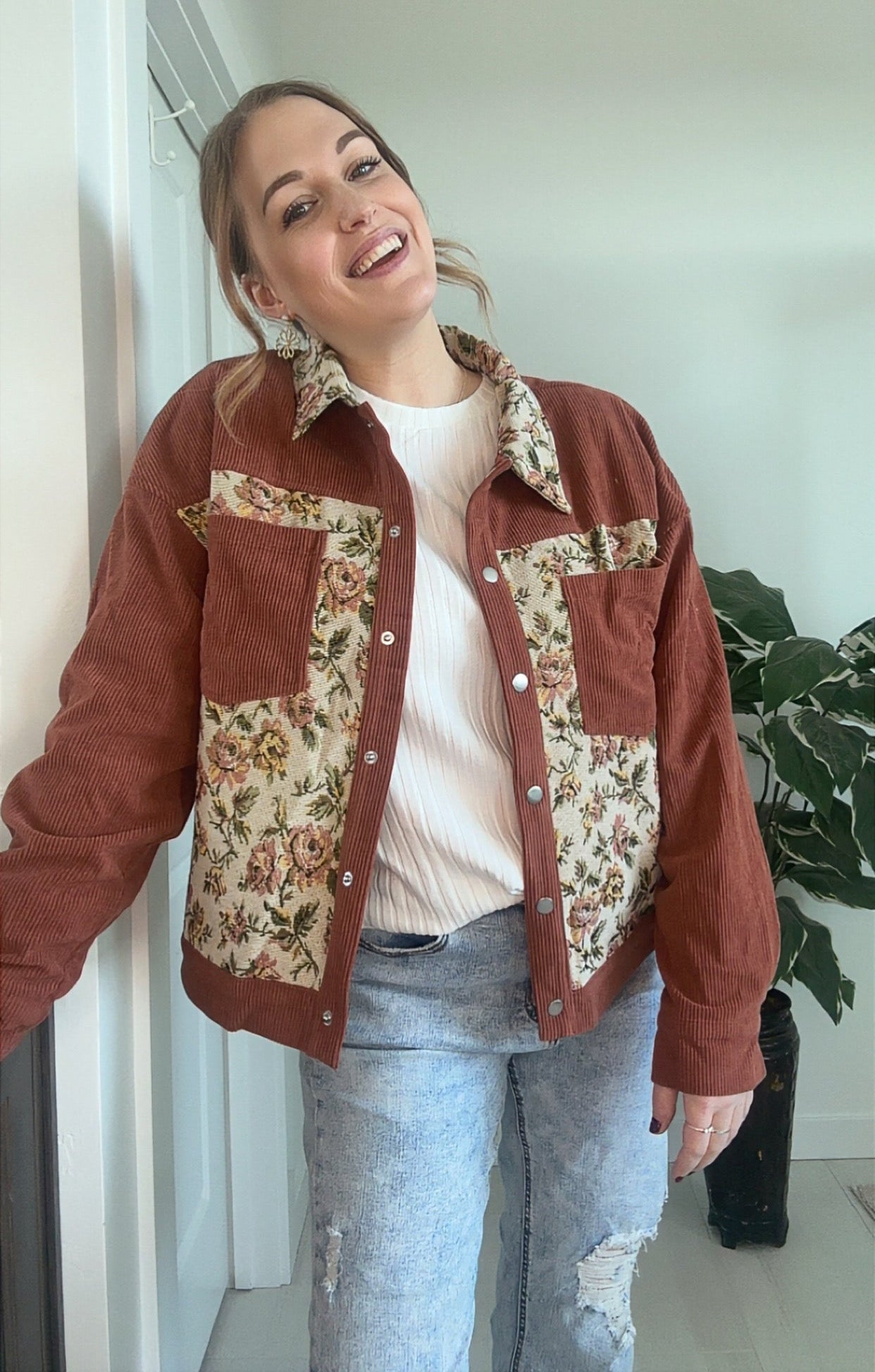 This rustic barn jacket has playful, vintage patchwork + a cozy ribbed texture, offering both comfort and charm. Add effortless character to your everyday outfits.